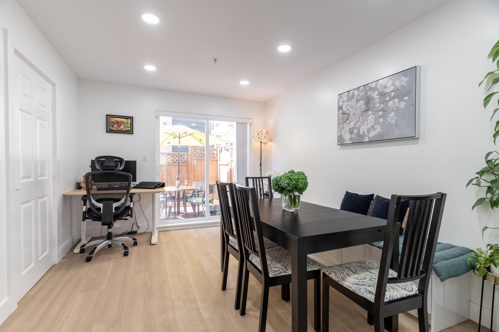 Almost SQF 1,400! Unbeatable location! Fully renovated in 2021, 2 storey townhouse with the feel of a detached home and well kept, like new, 3 beds, 2.5 baths, 1 covered Garage and one biweekly shared parking, almost SQF 400 south facing fenced backyard, a balcony upstairs, walk-in-closet, gas fire place to heat up the whole unit, easy stairs with a landing, family room, breakfast area next to kitchen, Den or pantry as you wish to use! powder room on main floor, extra free street parking, close to top schools, transit, restaurants, shopping, mall, beaches, Gym, trails, bike paths, quick 10-15 minute drive to downtown, and more. Come, see the townhouse and then explore the area. Open house: Sunday 1:30-3:30
